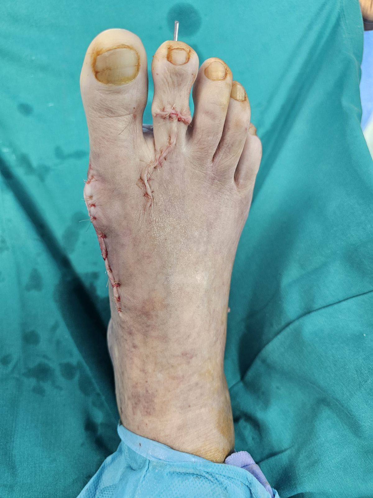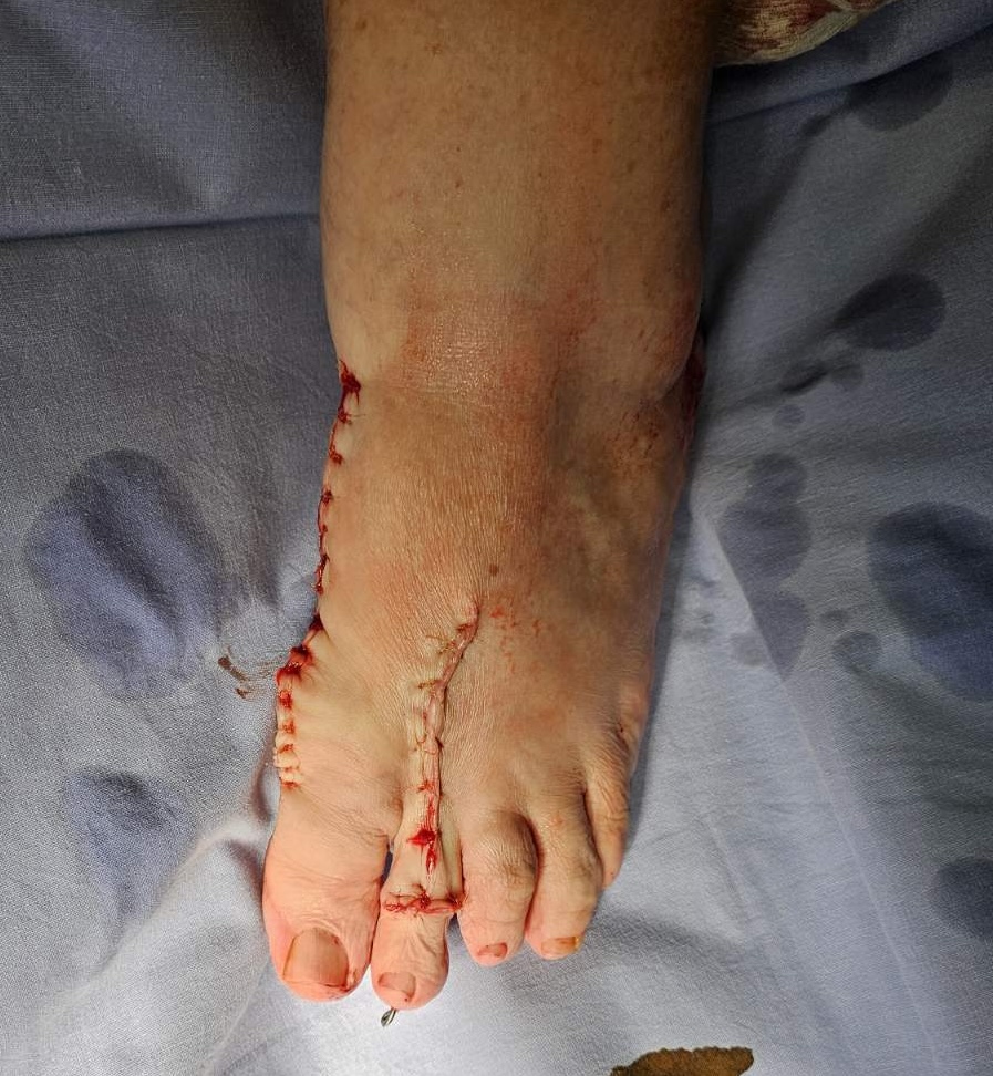 Η διαδερμική χειρουργική στον πρόσθιο πόδα (percutaneous forefoot surgery: PFS) γίνεται με τομή 1-3 mm και οστεοτομία με μία μικρή περιστρεφόμενη φρέζα με τη βοήθεια ακτινοσκοπικής καθοδήγησης.